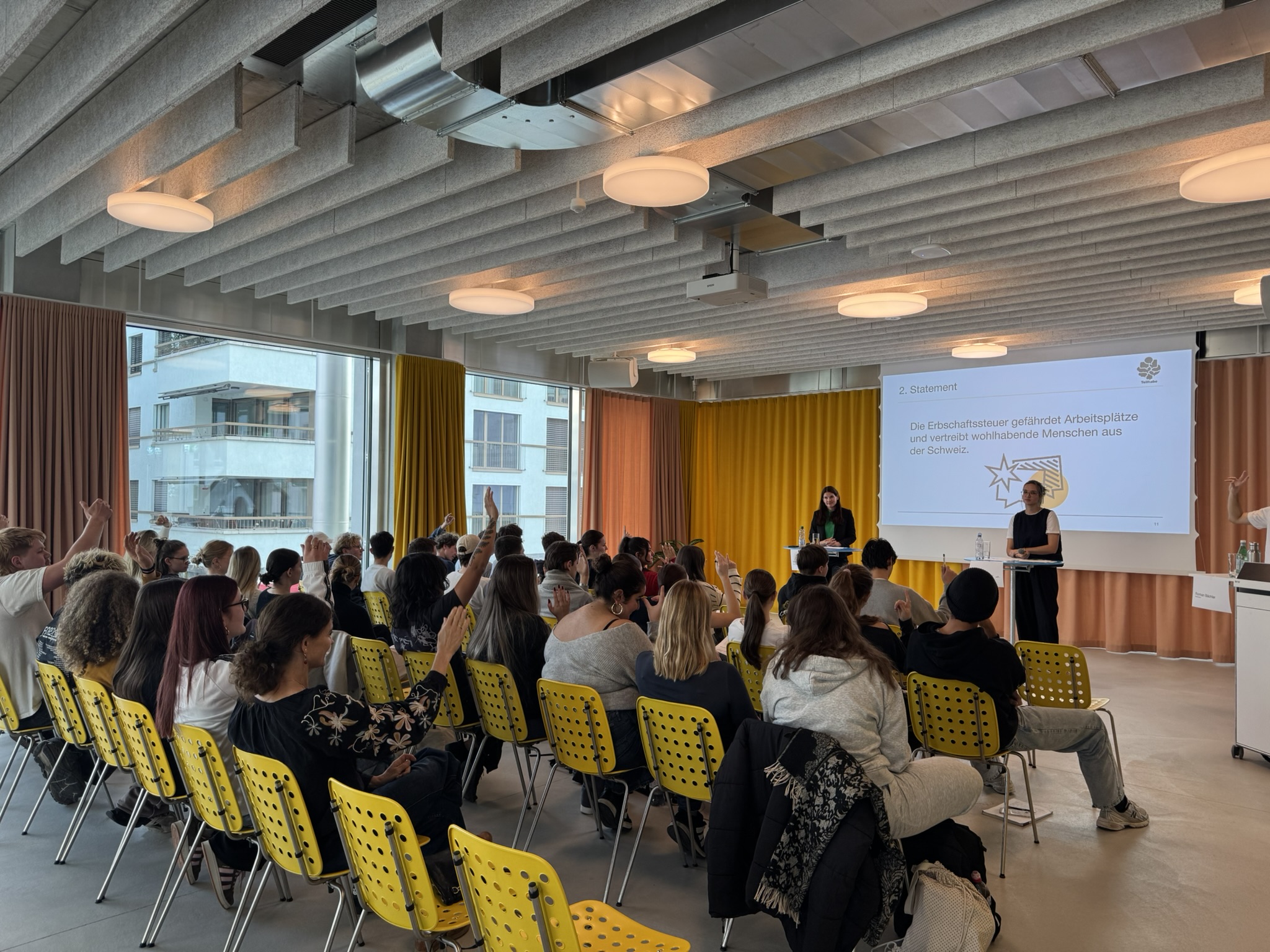 Nach einer kurzen Pause aufgrund des Schulhausumzugs konnten wir endlich wieder drei spannende Discuss it-Streitgespräche in unseren neuen Räumlichkeiten durchführen. Die frische, helle Aktionshallte bot einen idealen Rahmen für intensive politische Diskussionen und regen Austausch.