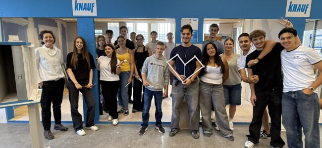 Im Anschluss durften wir unser theoretisches Wissen gleich selber praktisch anwenden. In kleinen Gruppen stellten wir selbst ein Trockenbaudetail her. Dabei durften wir die verschiedenen Arbeitsschritte kennenlernen. Über das Abmessen und das richtige Schneiden der Platten bis hin zur Montage und dem Verspachteln von kleinen Wandelementen konnten wir alles selber ausprobieren. Es machte grossen Spass, einmal selbst handwerklich tätig zu sein und zu sehen, wie viel Präzision und Teamarbeit in einem kleinen Detail steckt.